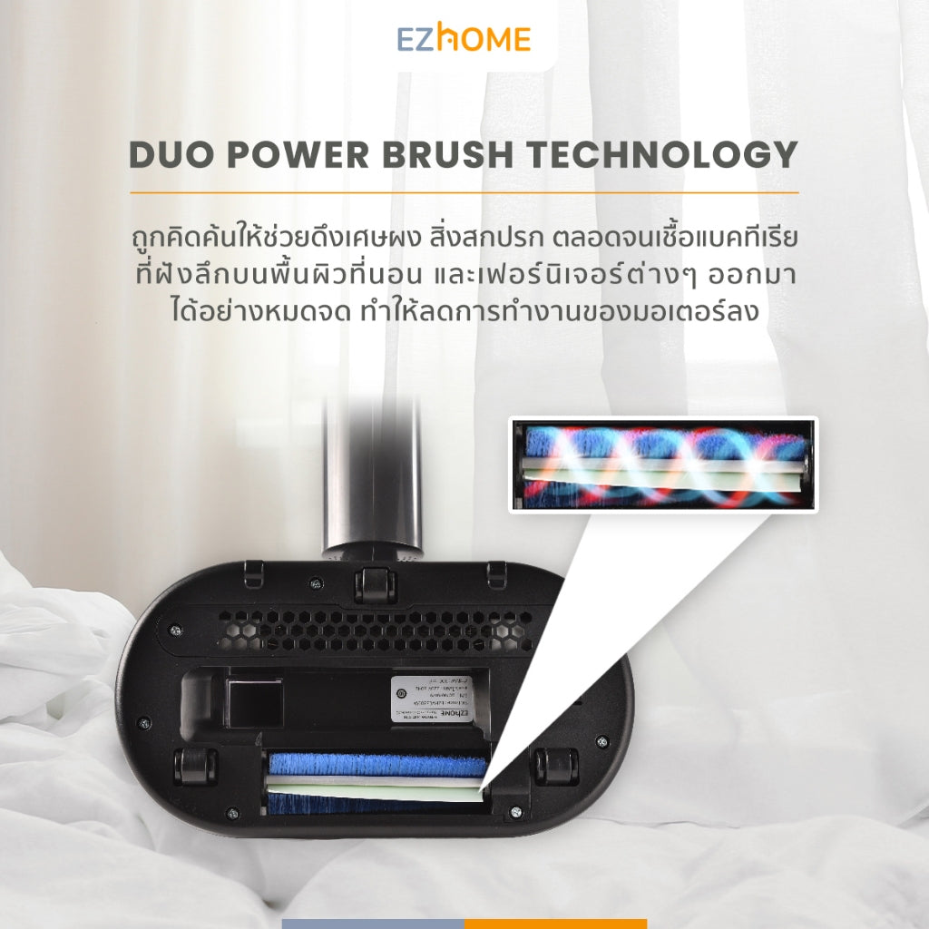 Duo power brush technology ที่ถูกคิดค้นให้ช่วยดึงเศษผง สิ่งสกปรก ตลอดจนเชื้อแบคทีเรียที่ฝังลึกบนพื้นผิวที่นอนและเฟอร์นิเจอร์ต่างๆออกมาได้อย่างหมดจด ทำให้ลดการทำงานของมอเตอร์ลง
