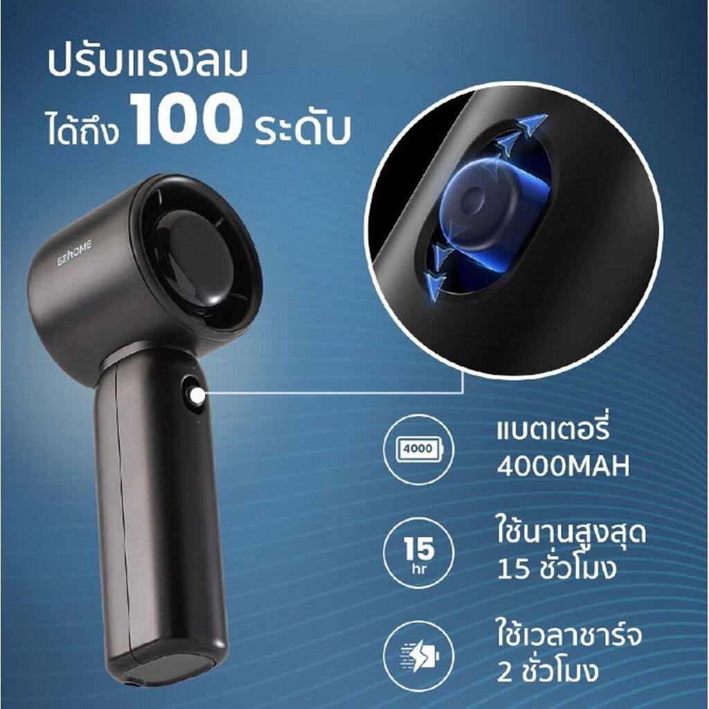 EZhome Super Power Handheld Fan พัดลมพกพา มีหน้าจอ LED พร้อมปุ่มปรับถึง 100 ระดับ ใช้นานได้สูงสุด 15 ชม By Rabbit Selection Lifestyle EZhome Super Power Handheld Fan - ไอเทมสู้แดดแรงที่ต้องมีติดมือติดกระเป๋าไว้ - ขนาดกะทัดรัดแต่ทรงพลัง - ด้วยพลังความเย็นของ อีซี่โฮม ซุเปอร์พาวเวอร์แฟน - พัดลมขนาดพกพามาพร้อมประสิทธิภาพแรงลมที่ปรับได้ถึง 100 ระดับ - ด้วยสวิตช์แบบลูกกลิ้ง เลื่อนขึ้น-ลงได้เร็วทันใจ ไม่ต้องกดปุ่มให้เมื่อยนิ้ว - ช่วยให้คุณปรับแต่งความแรงของลมได้ตามความต้องการ - ไม่ว่าจะลมเบา หรือลมแรง ที่มอบความเย็นสบายให้คุณทุกที่ทุกเวลา Product discription : - พัดลมที่มีการปรับระดับความแรงแบบ stepless ที่ปรับได้จาก 1 ถึง 100 - ระดับความแรงลมที่ควบคุมไดอย่างใจ ด้วยปลายนิ้ว เพียงแค่เลื่อนสวิตช์ลูกกลิ้งขึ้นลง - แบตเตอรี่ที่ใช้ได้ยาวนานสูงสุดกว่า 15 ชั่วโมง - พัดลมได้รับการออกแบบกระบอกลมที่พัฒนามาจากเครื่องเป่าผมแรงลมสูง - ความจุของแบตเตอรี่ขนาด 4000 มิลลิแอมป์ มอบแรงลมพลังสูง - สร้างความเย็นแบบรวดเร็วทันใจ - มอเตอร์พลังแรงสูง สร้างความแรงไกลถึง 6.5 เมตร/วินาที - ใช้ได้นานสูงสุด 15 ชั่วโมง (ขึ้นอยู่กับความเร็วลม) - หน้าจอแสดงผลแอลอีดี แสดงกำลังแรงลมและปริมาณของแบตเตอรี่ - สามารถเช็คปริมาณคงเหลือของแบตเตอรี่เพียงกดปุ่ม 2 ครั้ง และเมื่อกดปุ่มค้างอีกครั้งจะเปลี่ยนเป็นกลับมาเป็นแรงลมกำลังสูงในทันที - ด้วย Sule Intelligent protection chip ที่ช่วยควบคุมอุณหภูมิและแรงดันไฟฟ้า - ในการปรับแรงลมทุกรอบ อย่างมีเสถียรภาพและปลอดภัยตลอดการใช้งาน - ทั้งป้องกันกระแสไฟเกิน, ป้องกันการเกิดความร้อนสูง, ป้องกันการเกิดแรงดันไฟฟ้าเกิน และป้องกันไฟฟ้าลัดวงจร - มีให้เลือก 2 สี มิดไนท์แบล็ค และ ลาเวนเดอร์ - สามารถทำงานได้นานถึง 15 ชั่วโมง มั่นใจได้เลยว่าคุณจะรู้สึกเย็นตลอดทั้งวัน และพร้อมทุกสถานการณ์ ทั้งเดินทางไปทำงานเพลิดเพลินกับกิจกรรมกลางแจ้ง หรือนั่งผ่อนคลายในบ้าน - ขั้นตอนในการเปิดพัดลม: ขั้นตอนที่ 1:เปิดสวิตช์ที่ด้านหลังของพัดลม ขั้นตอนที่ 2: กดลูกกลิ้งเพื่อเปิดพัดลม ขั้นตอนที่ 3: หมุนลูกกลิ้งเพื่อปรับความเร็วลมที่คุณต้องการ Specification : - ประเภทของแบตเตอรี่/พลังงาน : แบตเตอรี่ลิเธียม / พลังงาน 4000 มิลลิแอมป์ 3.7V14.8WH - แรงดันไฟฟ้า : 5 โวลท์ - กำลังไฟ : 10วัตต์ - ขนาดสินค้า : 58*61*166 มม. - วัสดุ : ABS + PC