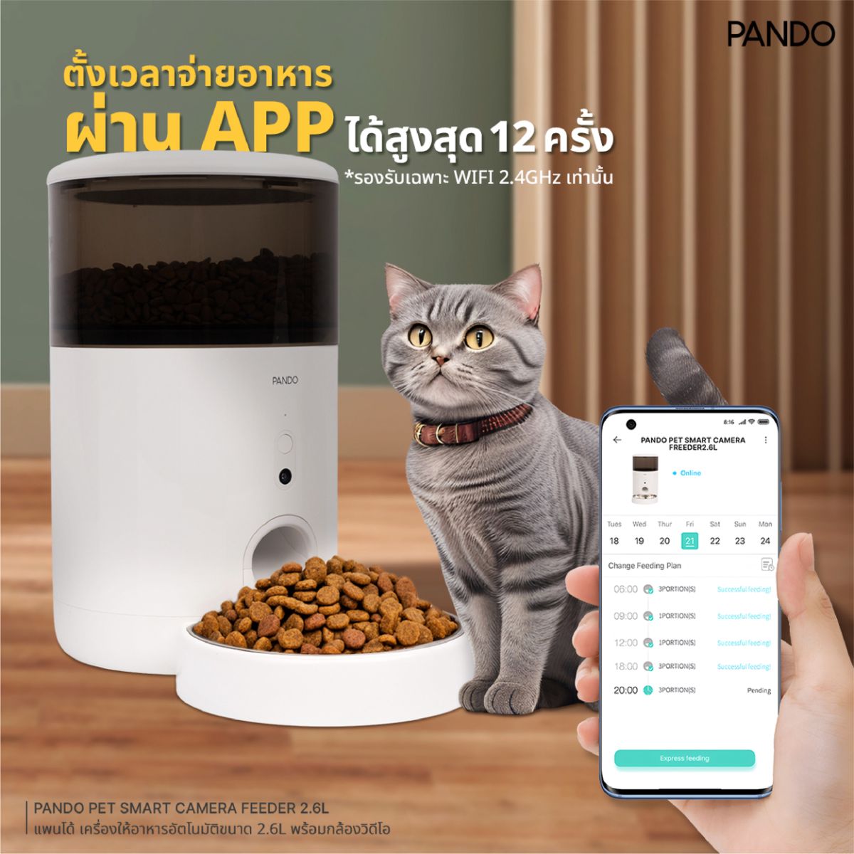 แพนโด้ เครื่องให้อาหารอัตโนมัติขนาด 2.6L พร้อมกล้องวิดีโอ